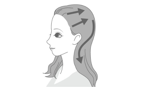 געו ישירות בקרקפת ומשכו כלפי מעלה לכיוון קודקוד הראש